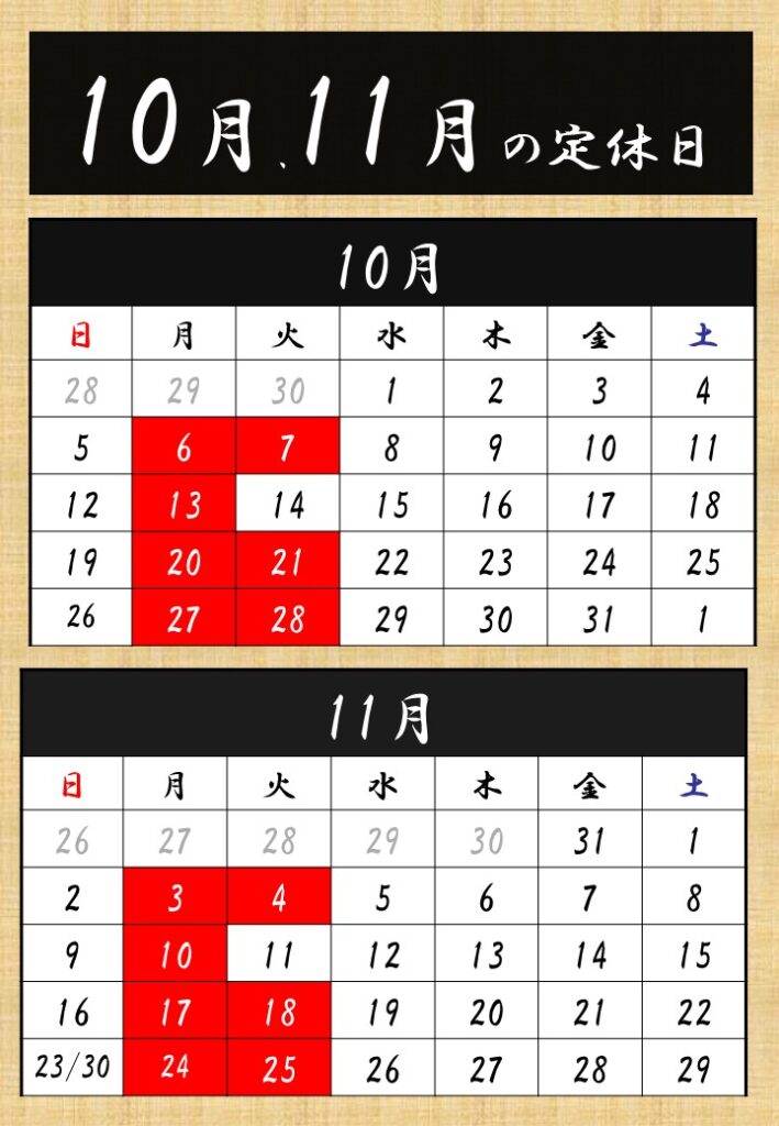 床屋の定休日【お知らせ】2025年10月と11月の定休日 nagasawa 2025年9月24日 【お知らせ】2025年10月と11月の定休日【24時間予約受付|LINE予約がとっても簡単】≫LINE予約はこちらから 定休日 床屋 理容室 都立家政